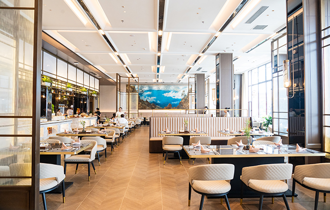 維也納餐廳位于白山大廈西側(cè)四樓,并于2013年全新裝修,富麗堂皇的金色大廳最多可容納260人用餐,高貴典雅的禮儀大廳可同時容納550人用餐,是舉辦各種宴會及會議的理想場所。
